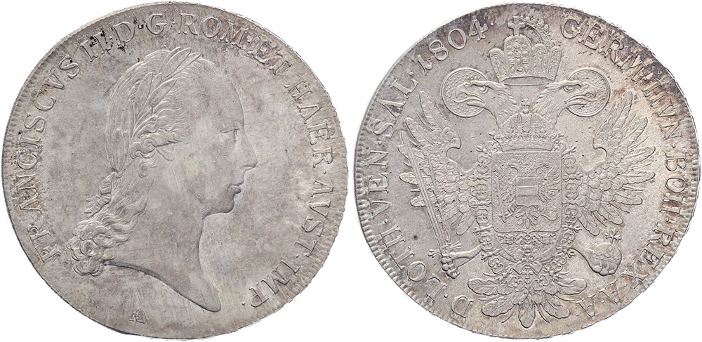 Thaler 1804A. Davenport 4; J. 155; Voglhuber 306 type II; KM 2159. Vorzüglich / Stempelglanz.