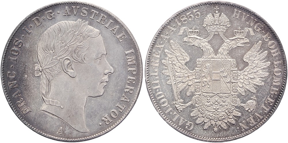 Thaler 1855A. J. 296; KM 2243.1. Fast Stempelglanz.