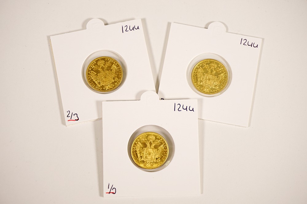 Lot (3) 1 Ducat 1915 restrike. KM 5992; Fr. 494; J. 344. Vorzüglich.