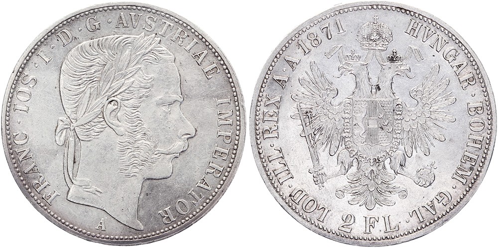 Doppelgulden 1871A. J. 366a; KM 2232. Vorzüglich.