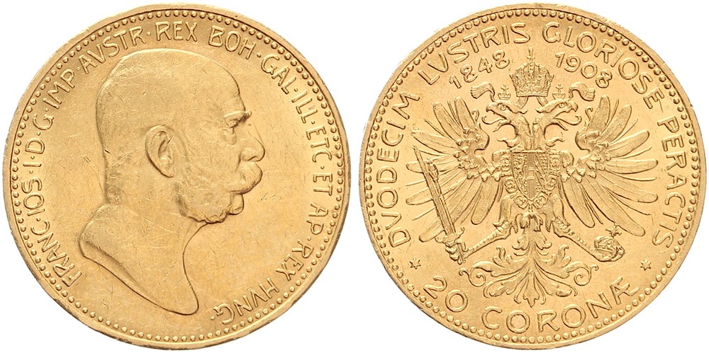 20 Corona 1908. KM 2811; Fr. 515; J. 399. Vorzüglich.