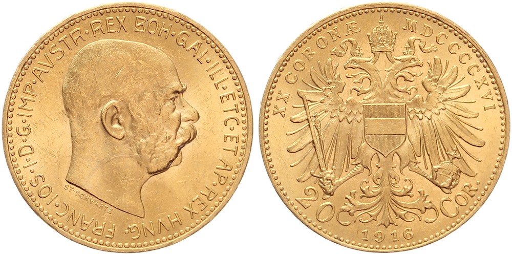 20 Corona 1916 Shield on Eagle. KM 2827; Fr. 511; J. 392. Vorzüglich.