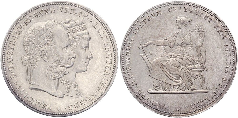 Doppelgulden 1879 auf die silberne Hochzeit. J. 369; KM XM5. Vorzüglich.