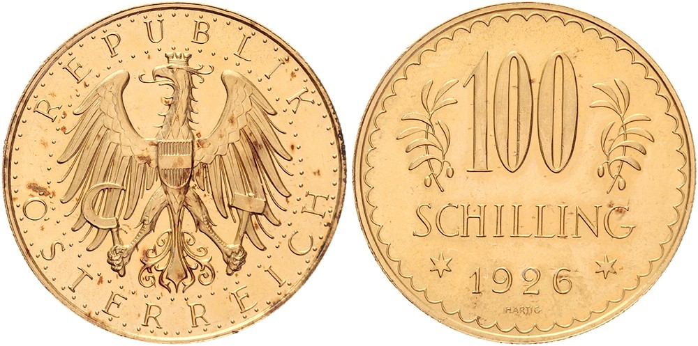 100 Schilling 1926. KM 2842; Fr. 520; J. 437. Vorzüglich.