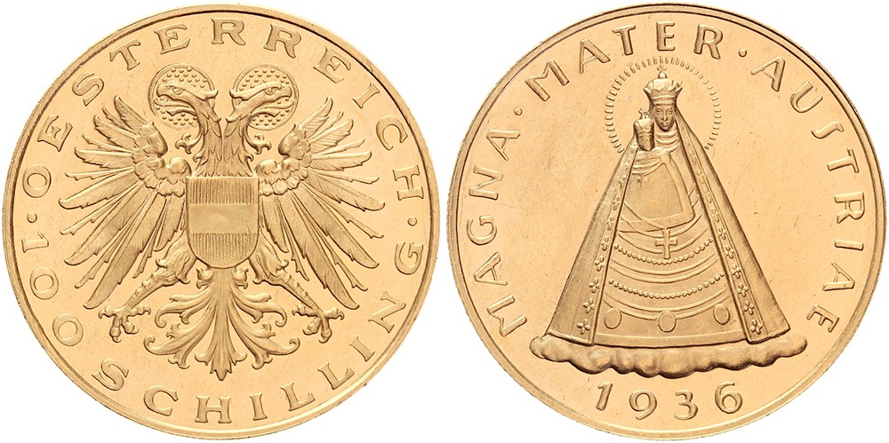 100 Schilling 1936 Madonna. KM 2857; Fr. 522; J. 447. (PP) Vorzüglich.
