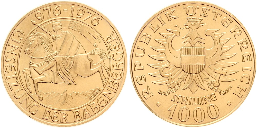 1000 Schilling 1976 Babenberger. KM 2933; Fr. 909. Vorzüglich.
