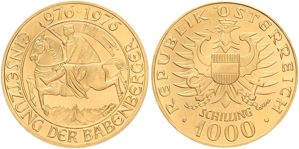 1000 Schilling 1976 Babenberger. KM 2933; Fr. 909. Vorzüglich.