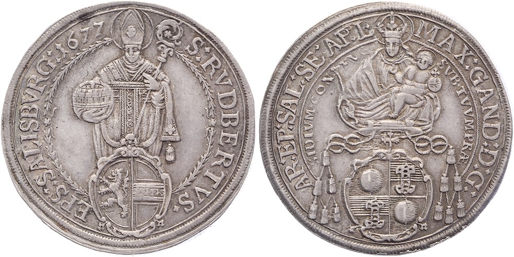 Thaler 1677. Probszt 1660; Davenport 3508; KM 190. Patina. Sehr schön / vorzüglich.