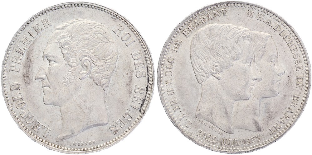 Moduul van 5 Francs 1853 Huwelijk Leopold & Maria Hendrika. KM X2.1. Prachtig.
