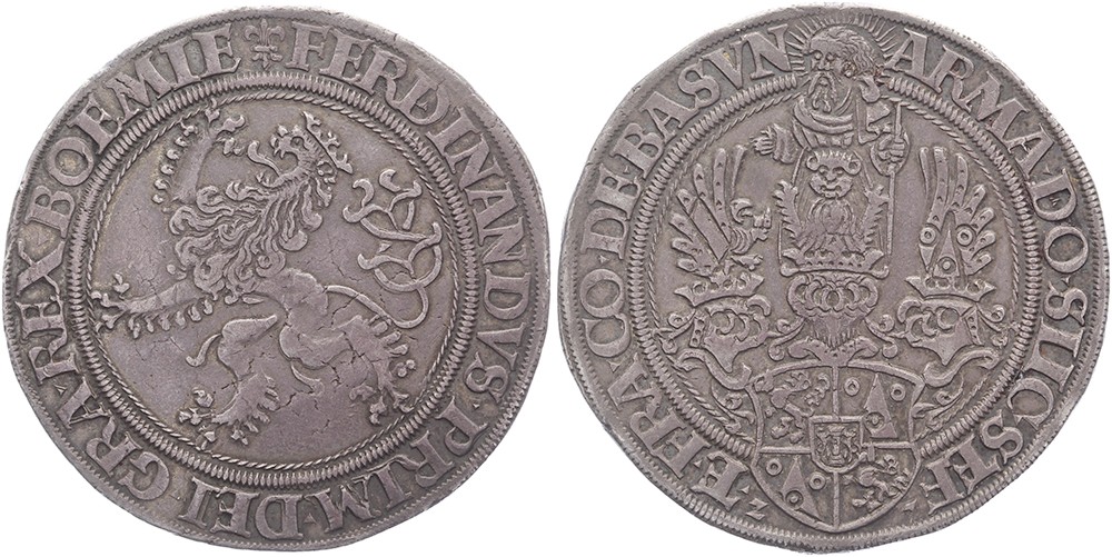 Thaler (15)Z7 mintmark lily (Caspar van Mergenthal). Davenport 8148var.; Fiala —. Struck posthumously. Nice colour, about EF.