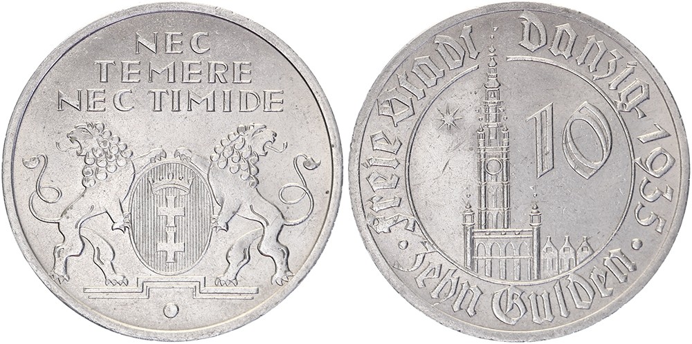 10 Gulden 1935 Town hall tower. Jaeger D20; AKS 7; KM 159. Almost uncirculated.