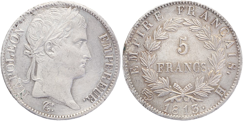 5 Francs 1813H. Gadoury 584; KM 694.6. Traces de corrosion. Superbe.