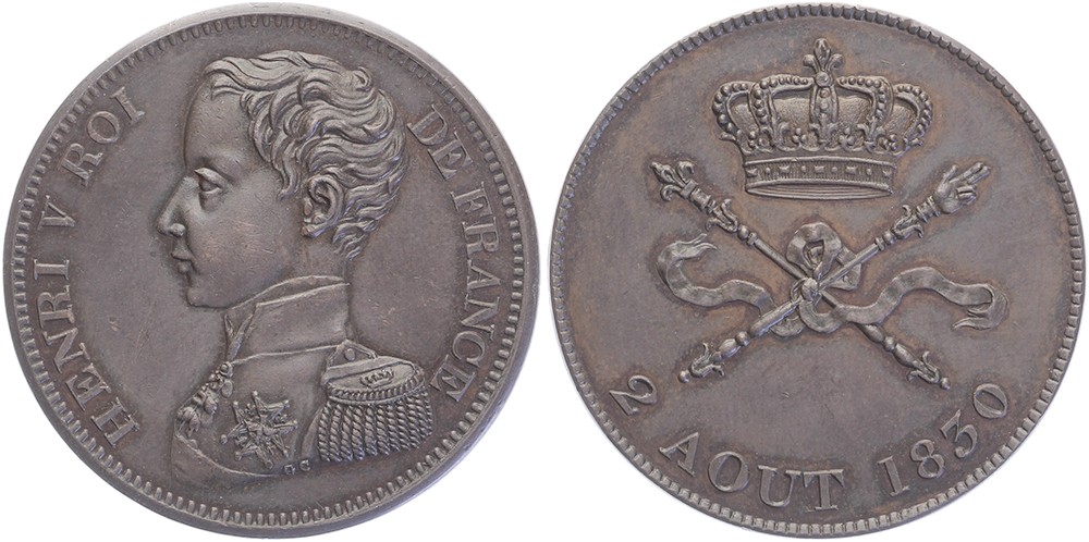 Module de 5 Francs 1830 en bronze. VG 2687; Gadoury 649; KM X32. Superbe à FDC.