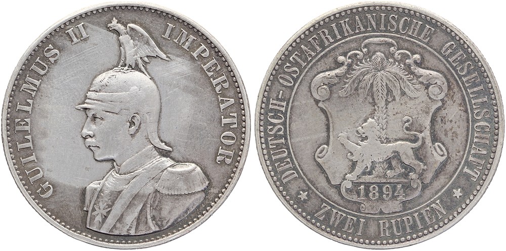 2 Rupien 1894. Jaeger 714; AKS 914; KM 5. F / VF.