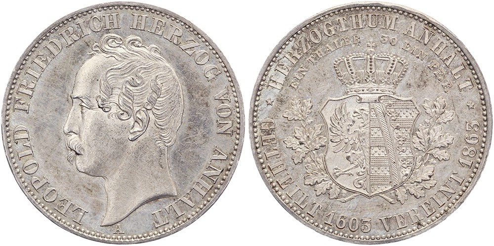 Thaler 1863 Wiedervereinigung. Davenport 510; AKS 35; KM 15. Vorzüglich / Stempelglanz.