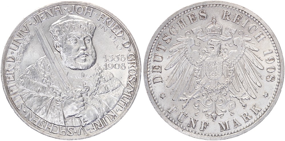 5 Mark 1908 Uni Jena. Jaeger 161; KM 220. Stempelglanz.
