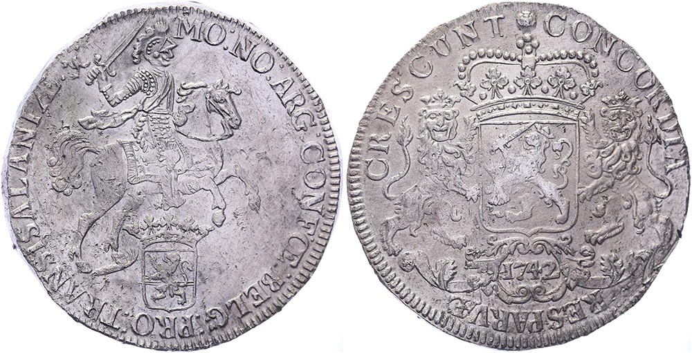 Zilveren rijder of dukaton 1742. Delm. 1036; CNM 2.38.80. HPM 49. Prachtig / FDC.