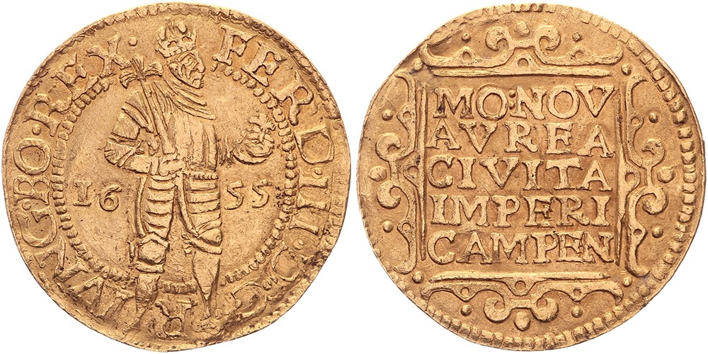 Gouden dukaat 1655. Delm. 1117; CNM 2.30.18; HPM 16 [3,51 gram]. Zeldzaam. Zeer fraai / Prachtig.