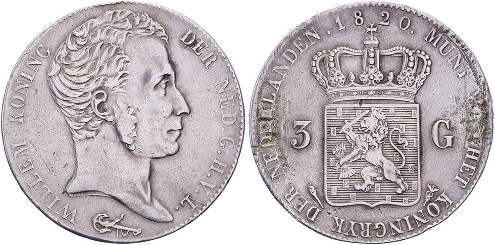 3 Gulden 1820 Utrecht mmt. fakkel Sch. 242. Vaag montagespoor Bijna zeer fraai