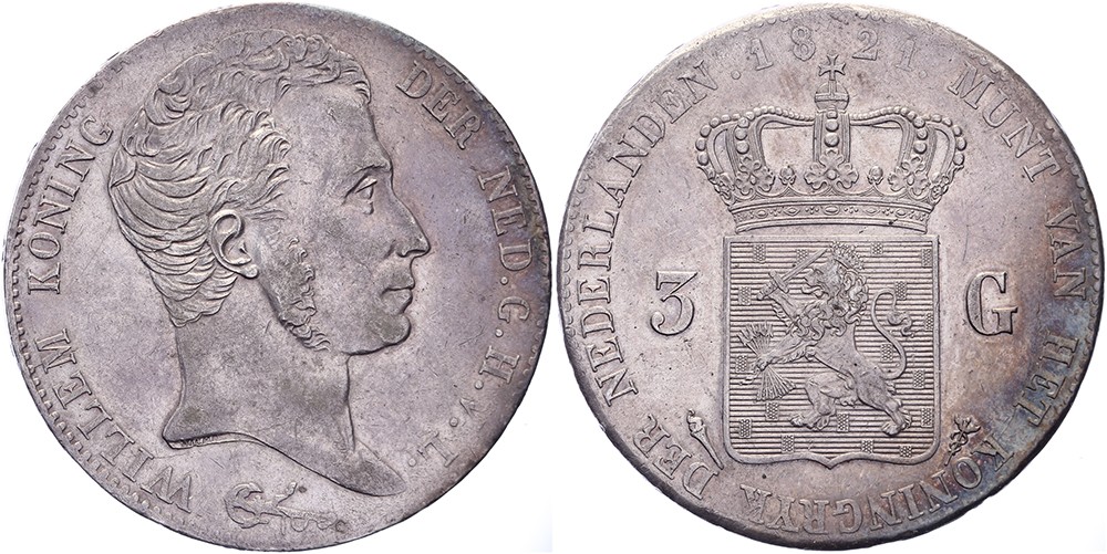 3 Gulden 1821 Utrecht mmt. fakkel Sch. 243 Vrijwel prachtig