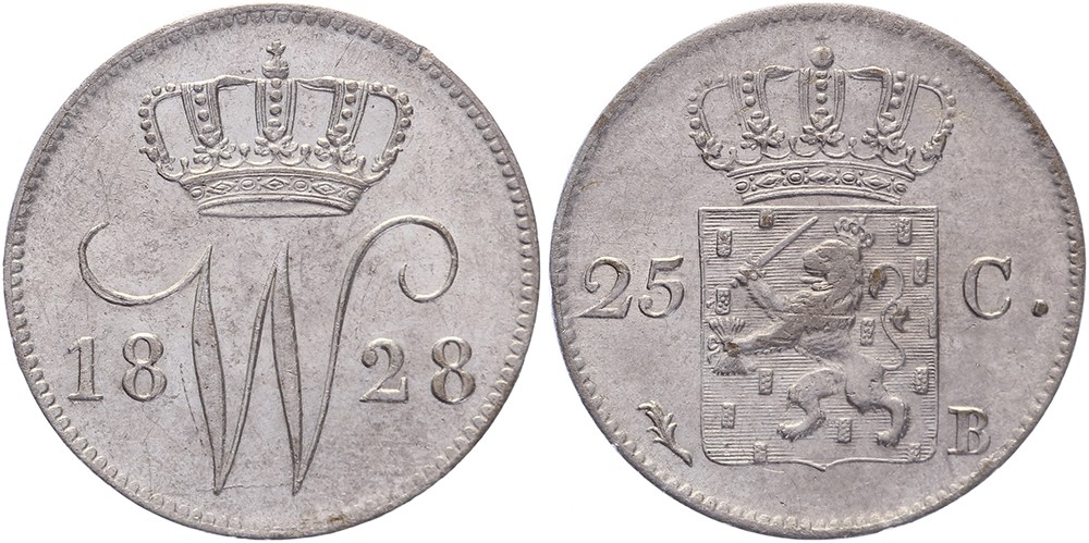 25 Cents 1828 Brussel mmt. palmtak Sch. 299 Prachtig