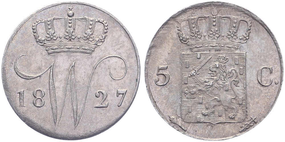 5 Cents 1827 Utrecht mmt. fakkel Sch. 317 Prachtig