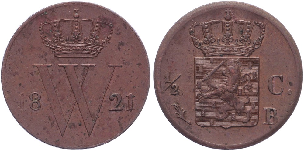 ½ Cent 1821 Brussel mmt. palmtak Sch. 366 Prachtig
