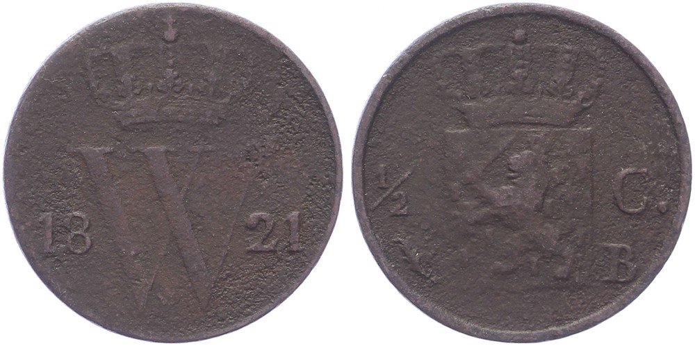 ½ Cent 1821 Brussel mmt. palmtak Sch. 366. Vondstexemplaar Circa fraai
