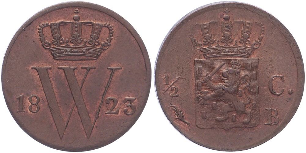 ½ Cent 1823 Brussel mmt. palmtak Sch. 368. Originele kleur FDC