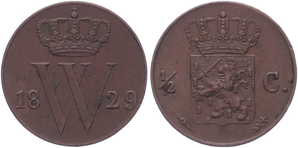 ½ Cent 1829 Utrecht mmt. fakkel Sch. 359 Ruim prachtig