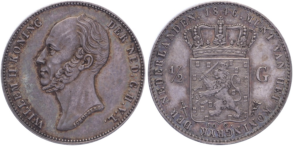 ½ Gulden 1846 mmt. zwaard Sch. 529a. Met gepolijste stempels geslagen. Randschrift: GOD * ZY * MET * ONS Vrijwel FDC