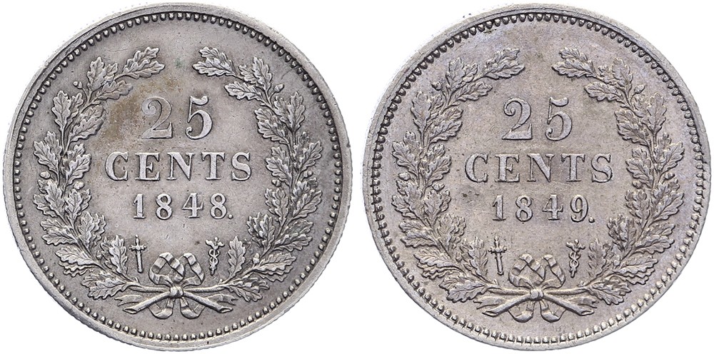 Lot (2) 25 Cents 1848, 1849 Sch. 532 en 533b Ruim prachtig