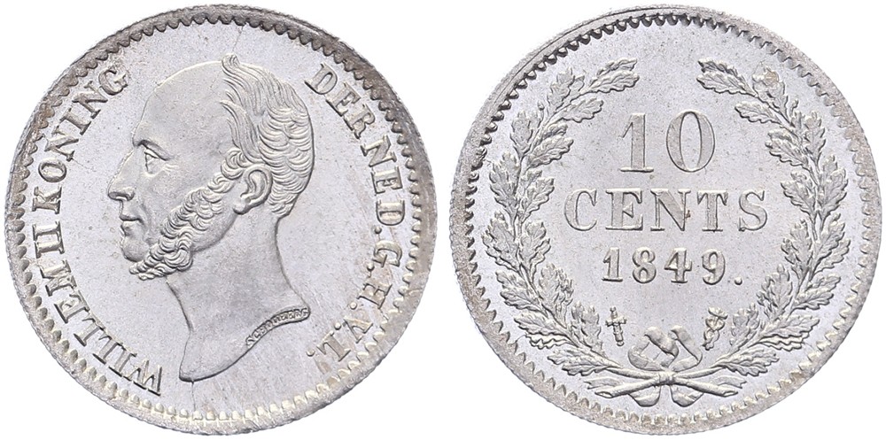 10 Cents 1849 mmt. zwaard Sch. 535. Punt achter jaartal FDC