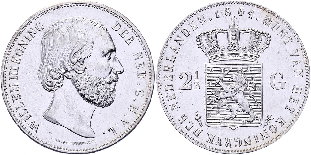 Rijksdaalder 1864 mmt. zwaard Sch. 590 Prachtig