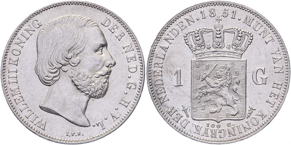 1 Gulden 1851 mmt. zwaard Sch. 605 Prachtig / FDC