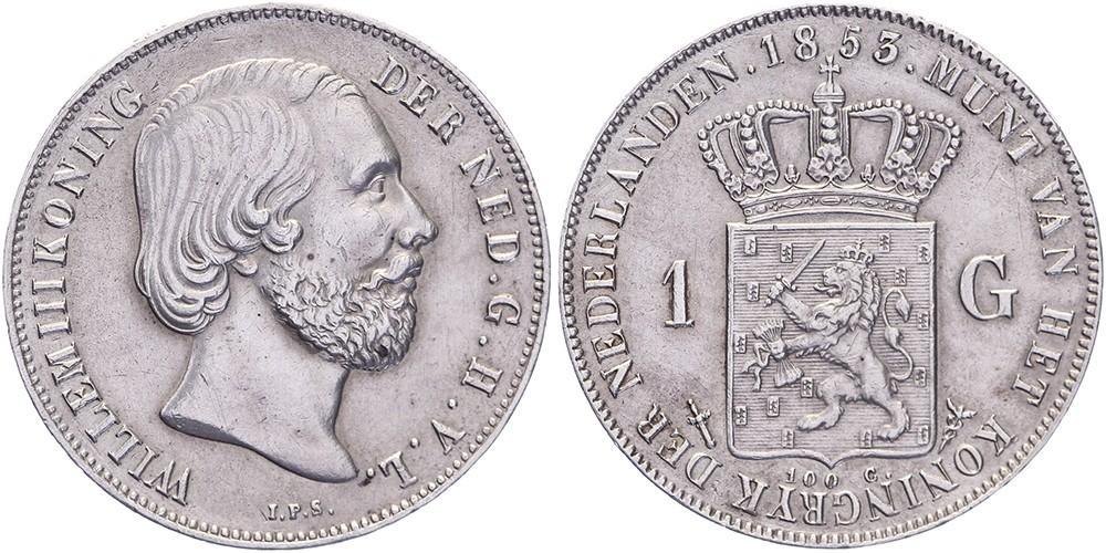 1 Gulden 1853 mmt. zwaard Sch. 606 Vrijwel prachtig