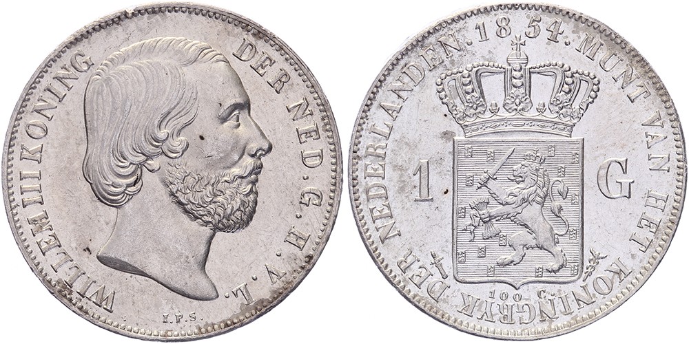 1 Gulden 1854 mmt. zwaard Sch. 607 Prachtig