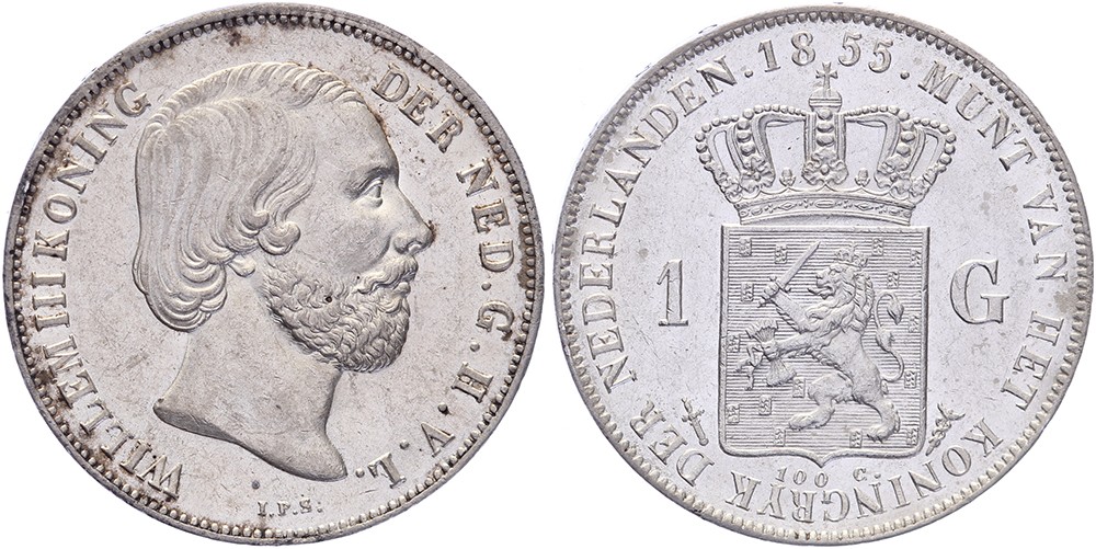 1 Gulden 1855 mmt. zwaard Sch. 608 Ruim prachtig