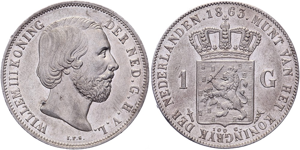 1 Gulden 1863 mmt. zwaard Sch. 615 Ruim prachtig