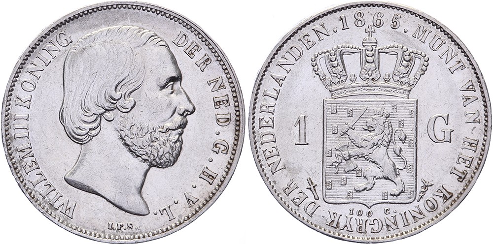 1 Gulden 1865 mmt. zwaard Sch. 617 Ruim zeer fraai