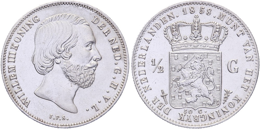 ½ Gulden 1858 mmt. zwaard Sch. 625 Ruim prachtig