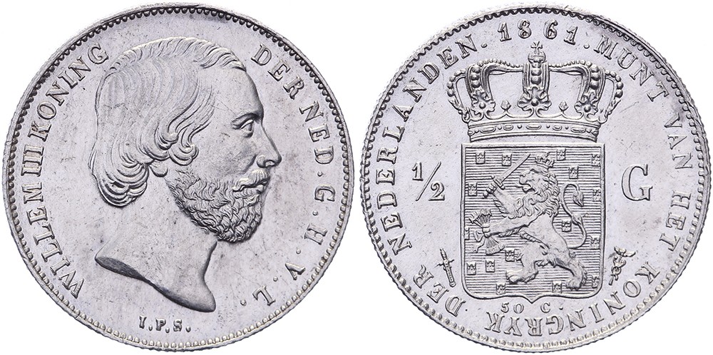 ½ Gulden 1861 mmt. zwaard Sch. 628 Ruim prachtig