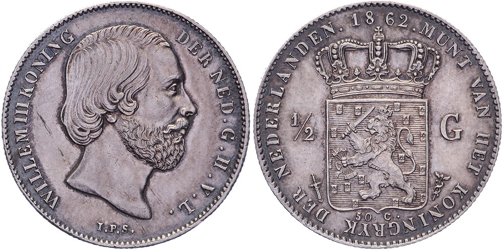 ½ Gulden 1862 mmt. zwaard Sch. 629 Ruim prachtig