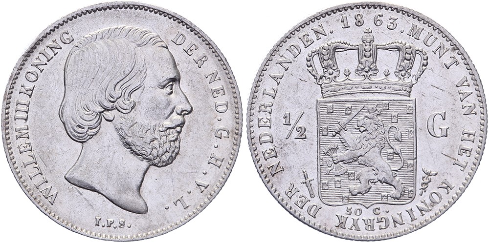 ½ Gulden 1863 mmt. zwaard Sch. 630 Ruim prachtig