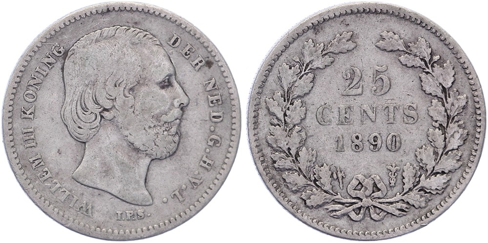 25 Cents 1890 mmt. hellebaard Sch. 639a. Zonder punt achter jaartal Fraai