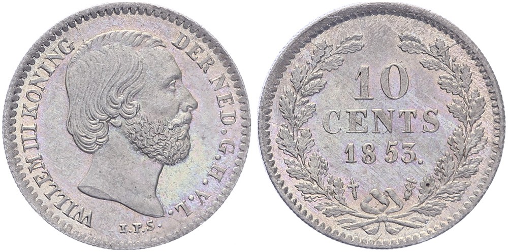 10 Cents 1853 mmt. zwaard Sch. 642 Prachtig / FDC