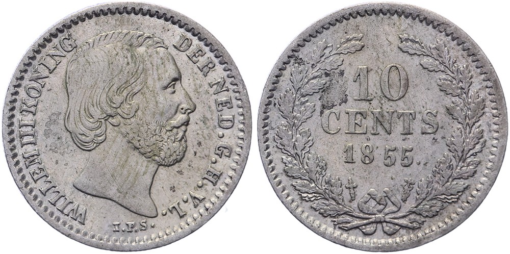 10 Cents 1855 mmt. zwaard Sch. 643 Zeer fraai / prachtig