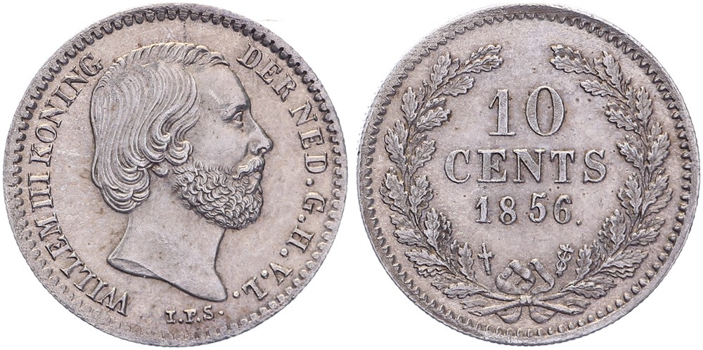 10 Cents 1856 mmt. zwaard Sch. 644 Ruim prachtig