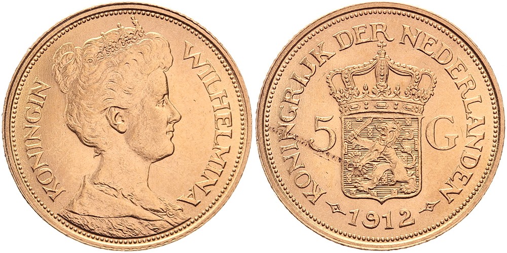 5 Gulden 1912 zonder mmt. Sch. 754 Prachtig