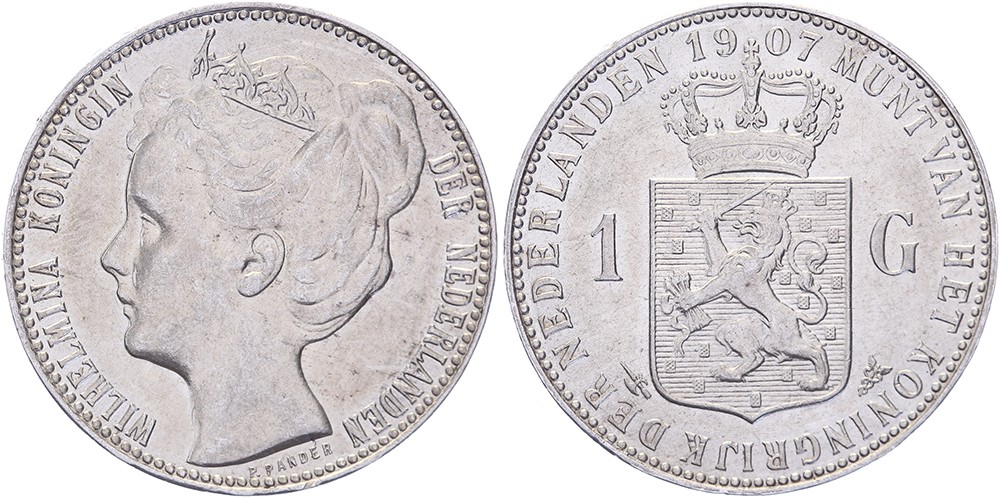 1 Gulden 1907 mmt. hellebaard Sch. 809 Prachtig